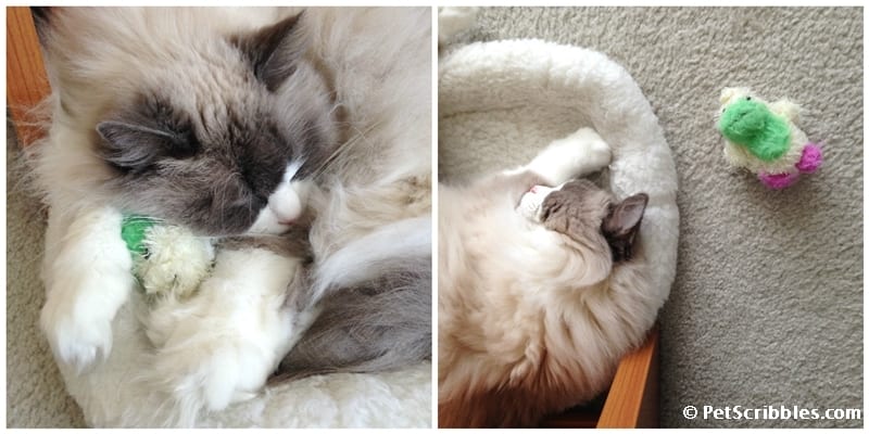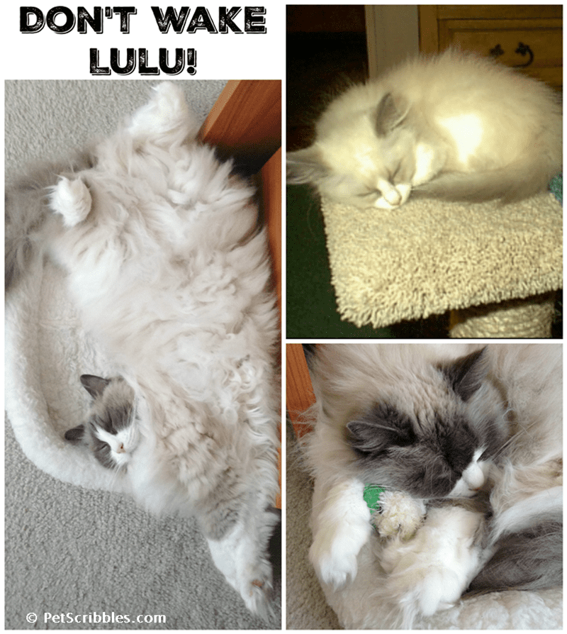 Fast forward to her present kitten age of 15.5 years: Lulu has perfected the tummy-up-half-twist in her sleep.