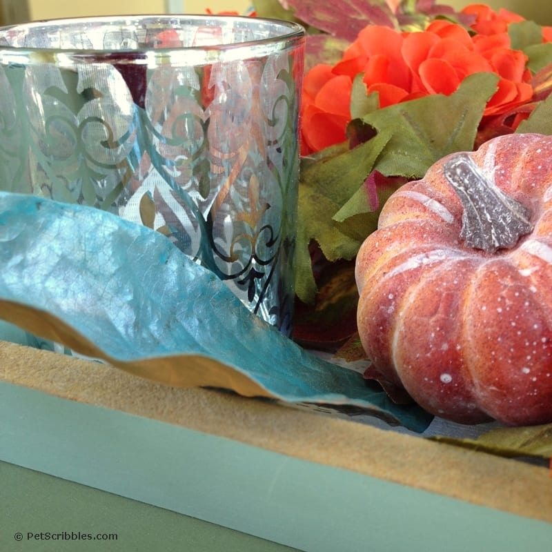 I love how the leaves are a pretty close match to the candle holders, and also bring out the painted tray color too.