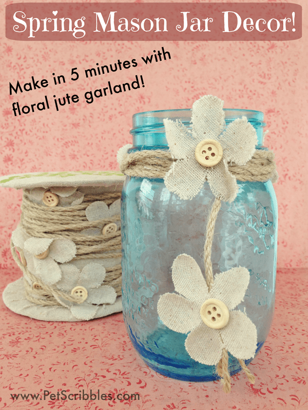 Make this Spring Mason Jar Decor in just five minutes using the prettiest floral jute garland! It doesn’t get any easier than this!